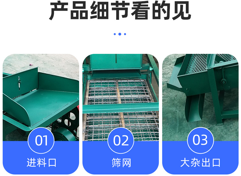 該機(jī)適用于小戶型的糧食收購點(diǎn),產(chǎn)量是每小時(shí)2-3噸,凈選度98%,根據(jù)篩網(wǎng)的挑選和合理的風(fēng)量調(diào)節(jié)適用于各種農(nóng)作物,如:玉米、小麥、水稻、高粱、菜籽、芝麻、大豆 花生 和其他豆類。