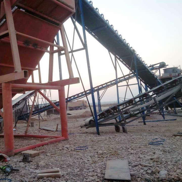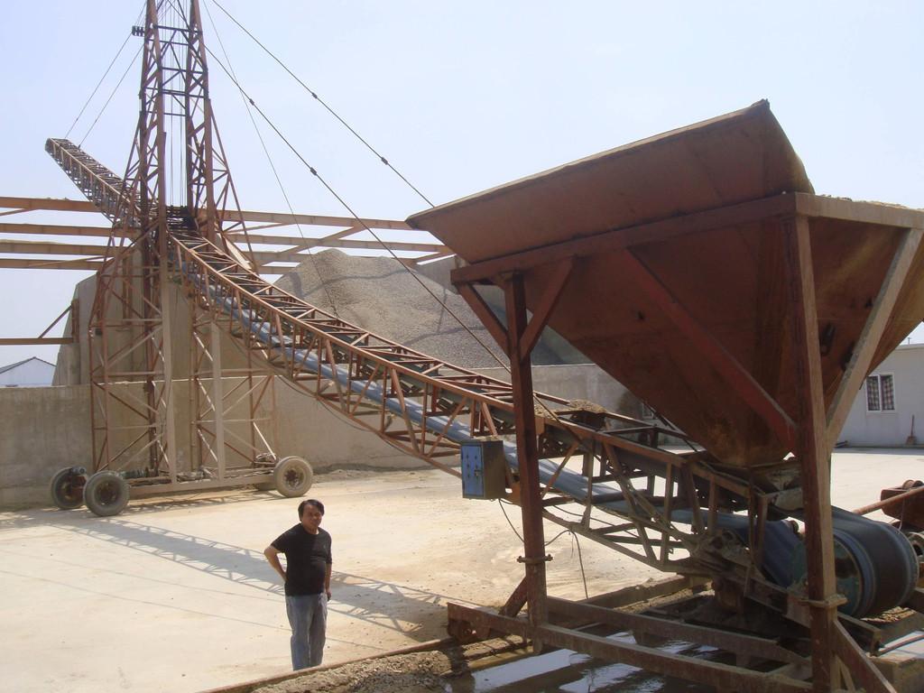 主要由機(jī)架、輸送皮帶、皮帶輥筒、張緊裝置、傳動(dòng)裝置等組成。機(jī)身采用優(yōu)質(zhì)鋼板連接而成 ,由前后支腿的高低差形成機(jī)架,平面呈一定角度傾斜。機(jī)架上裝有皮帶輥筒、托輥等,用于帶動(dòng)和支承輸送皮帶。有減速電機(jī)驅(qū)動(dòng)和電動(dòng)滾筒驅(qū)動(dòng)兩種方式。皮帶輸送機(jī)廣泛用于冶金、煤炭、水電、礦山等部門(mén)中用來(lái)輸送散裝物料或成件的輸送。在設(shè)備生產(chǎn)中廣泛的應(yīng)用在石料生產(chǎn)線的輸送中。