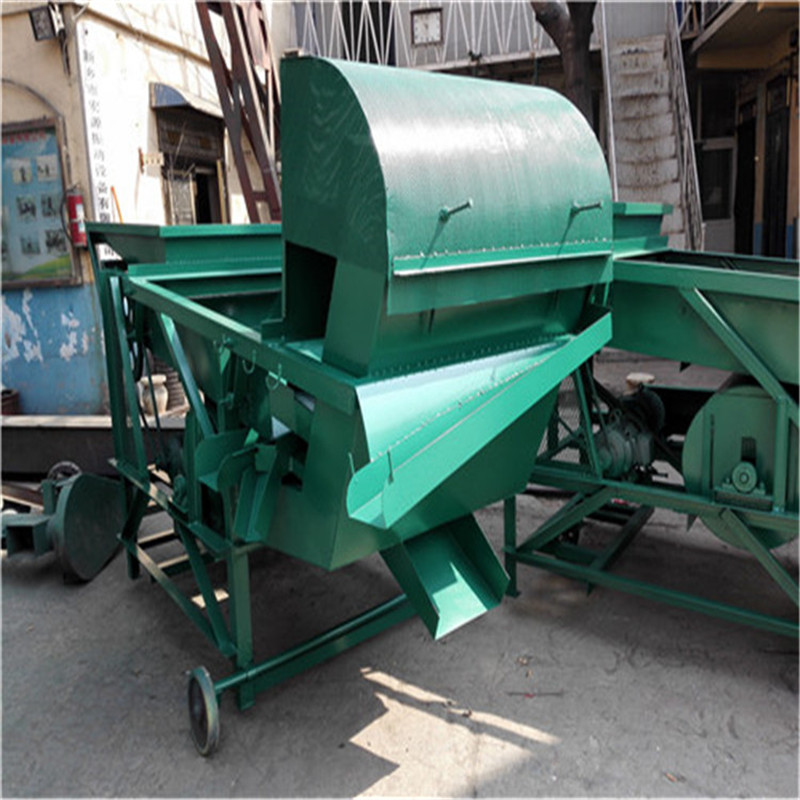 該清選機(jī)含有三層篩網(wǎng),工作時(shí)先經(jīng)過(guò)一層篩, 把原糧中比所需篩選物大的的雜質(zhì)、葉子、泥塊等雜物分離出來(lái),再經(jīng)過(guò)二層篩網(wǎng)經(jīng)好糧分離開(kāi),剩下三層篩網(wǎng)所篩物料即是比好糧小或碎的一些其他雜物。注:再好糧篩出過(guò)程中,經(jīng)過(guò)機(jī)器本身自帶風(fēng)機(jī)風(fēng)選出比較輕的灰塵雜物,好糧由前端的出來(lái)口排出。